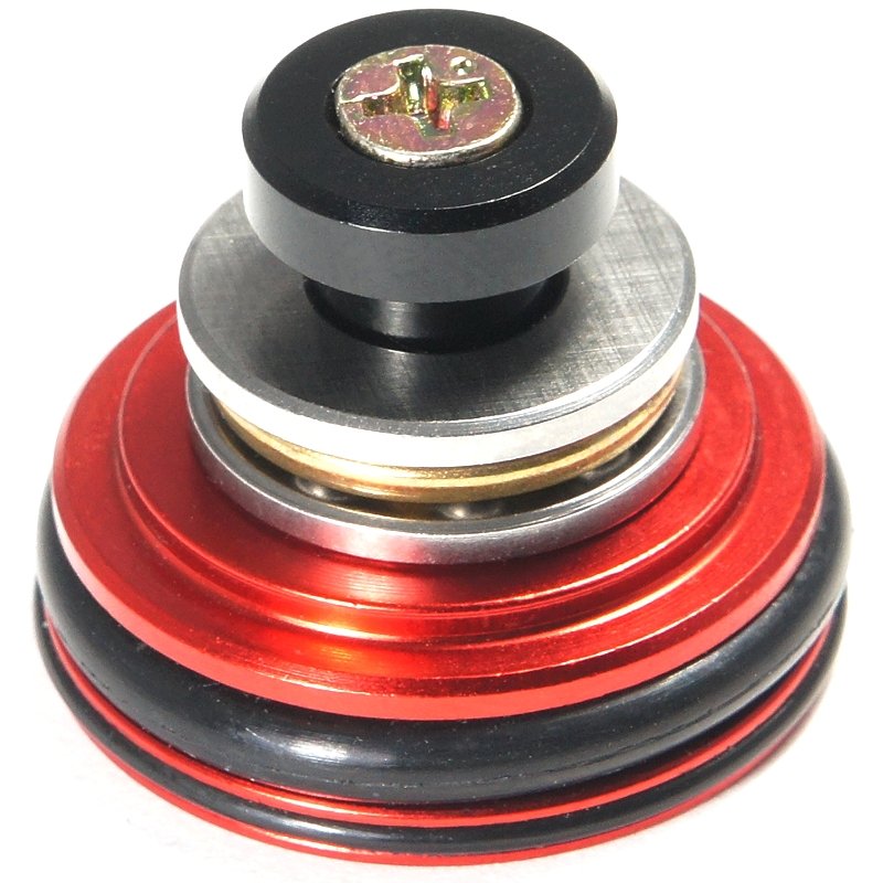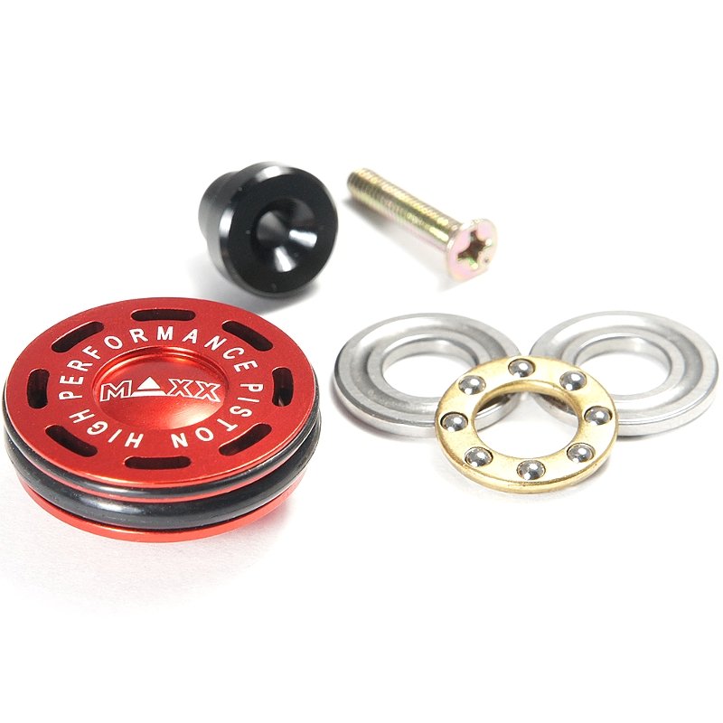 Hlava pístu je vyrobena na CNC strojích z jednoho kusu lehké (a zároveň odolné) hliníkové slitiny. Specifikem této hlavy jsou dvojité o-kroužky, které zabraňují úniku stlačovaného vzduchu mezi hlavou pístu a válce. V kombinaci s kuličkovým ložiskem, které účinně snižuje smykové pnutí pružiny při stlačování a expanzi, získáte vyšší a stabilnější výkon.