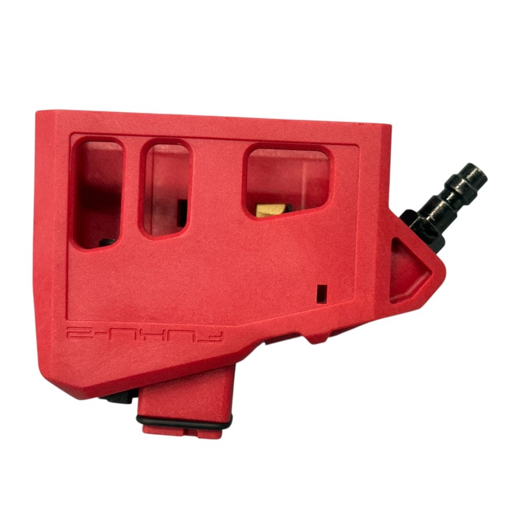 HPA Adaptér FUKU-2 je určen pro konverzi plynových pistolí AAP-01, AAP-01c a kompatibilních modelů Glock (Tokyo Marui, WE, Armorer Works, KJW, Novritsch SSP18, Elite Force/VFC/Umarex) na provoz s HPA systémem a zásobníky typu M4/M16. Adaptér umožňuje výrazné navýšení kapacity střeliva (až ~250 BB) a zajišťuje stabilní výkon bez závislosti na okolní teplotě.