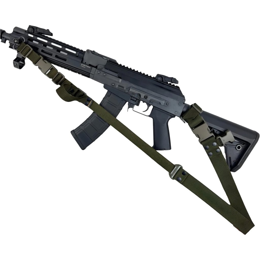 - Univerzální jedno- až dvoubodový popruh pro zbraně s možností rychlého přepnutí mezi režimy nošení.