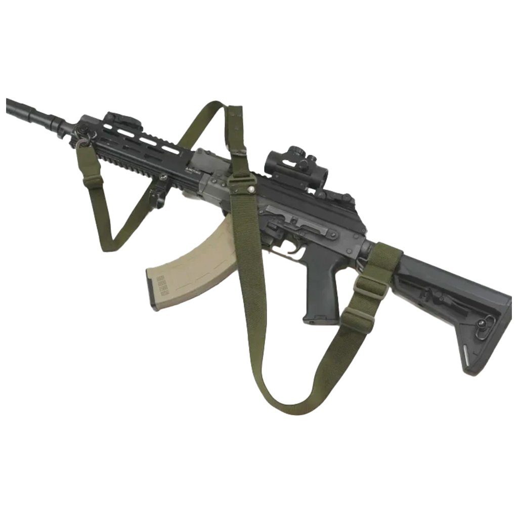 Popruh je vyroben z odolné 25mm polyamidové pásky, která v kombinaci s přepracovanou klamrou umožňuje rychlé a bezpečné nastavení délky jednou rukou, a to i v rukavicích. Konstrukce je navržena s důrazem na dlouhodobé pohodlí uživatele, minimalizuje zařezávání a kroucení pásky při nošení a zajišťuje stabilní vedení zbraně.
