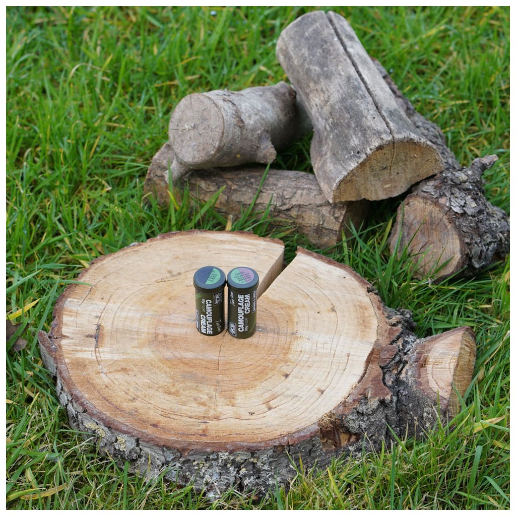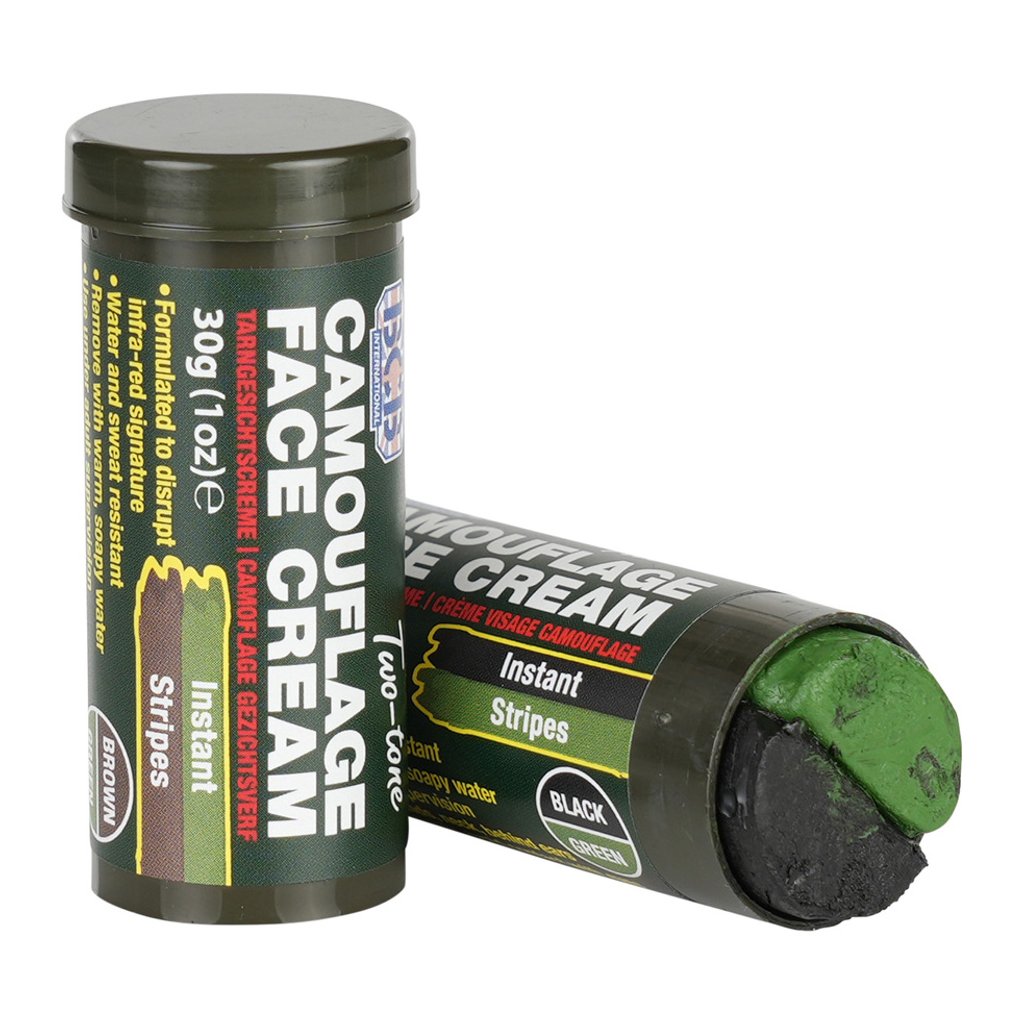 Pohodlná dvoutónová kamuflážní tyčinka od výrobce BCB, která rychle a efektivně vytváří pruhy narušující vzor bez potřeby zrcadla (jedna půlka jedna barva).