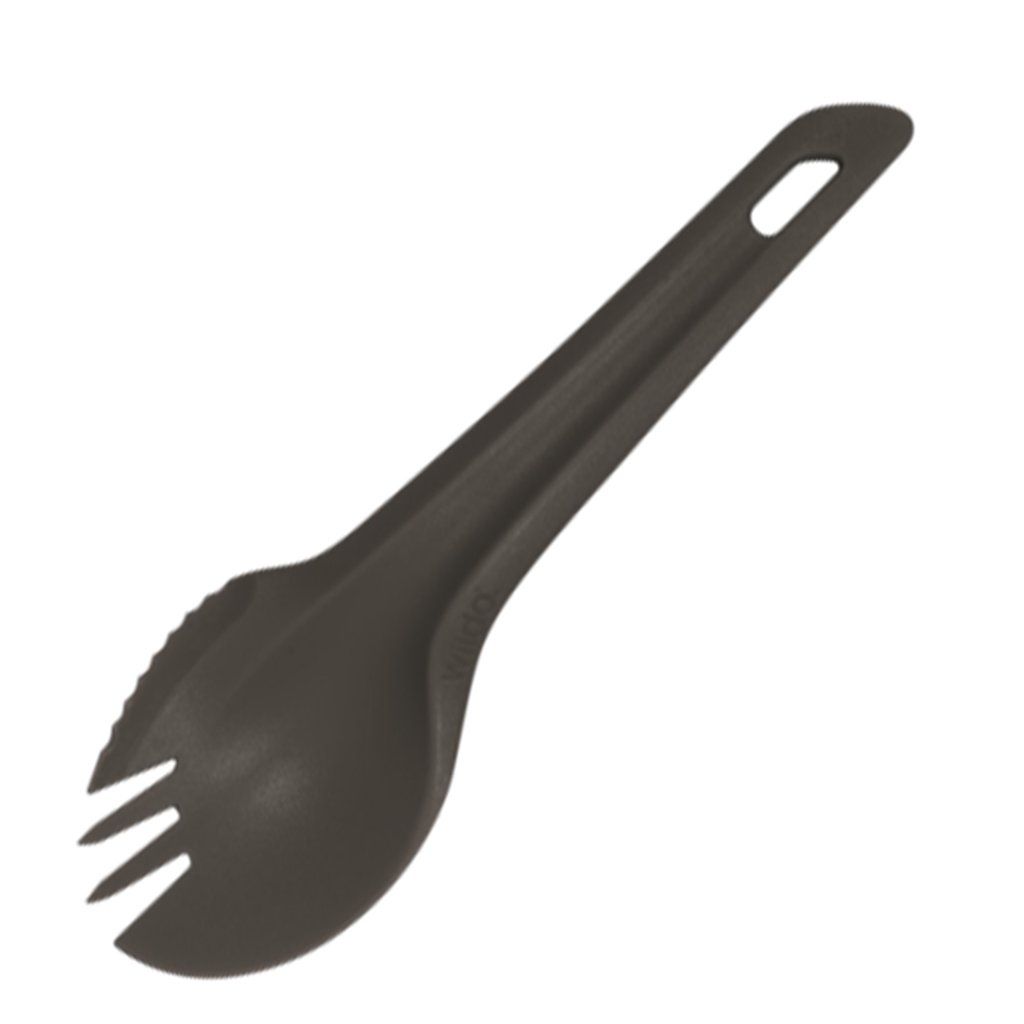 - Kompaktní kapesní příborová sada typu spork (lžíce, vidlička a nůž v jednom) od švédské značky WILDO. - Vyrobena z odolného a lehkého materiálu, vhodná pro outdoorové aktivity i každodenní použití. - Barva: tmavě šedá (Dark Grey), modelové označení W10309.