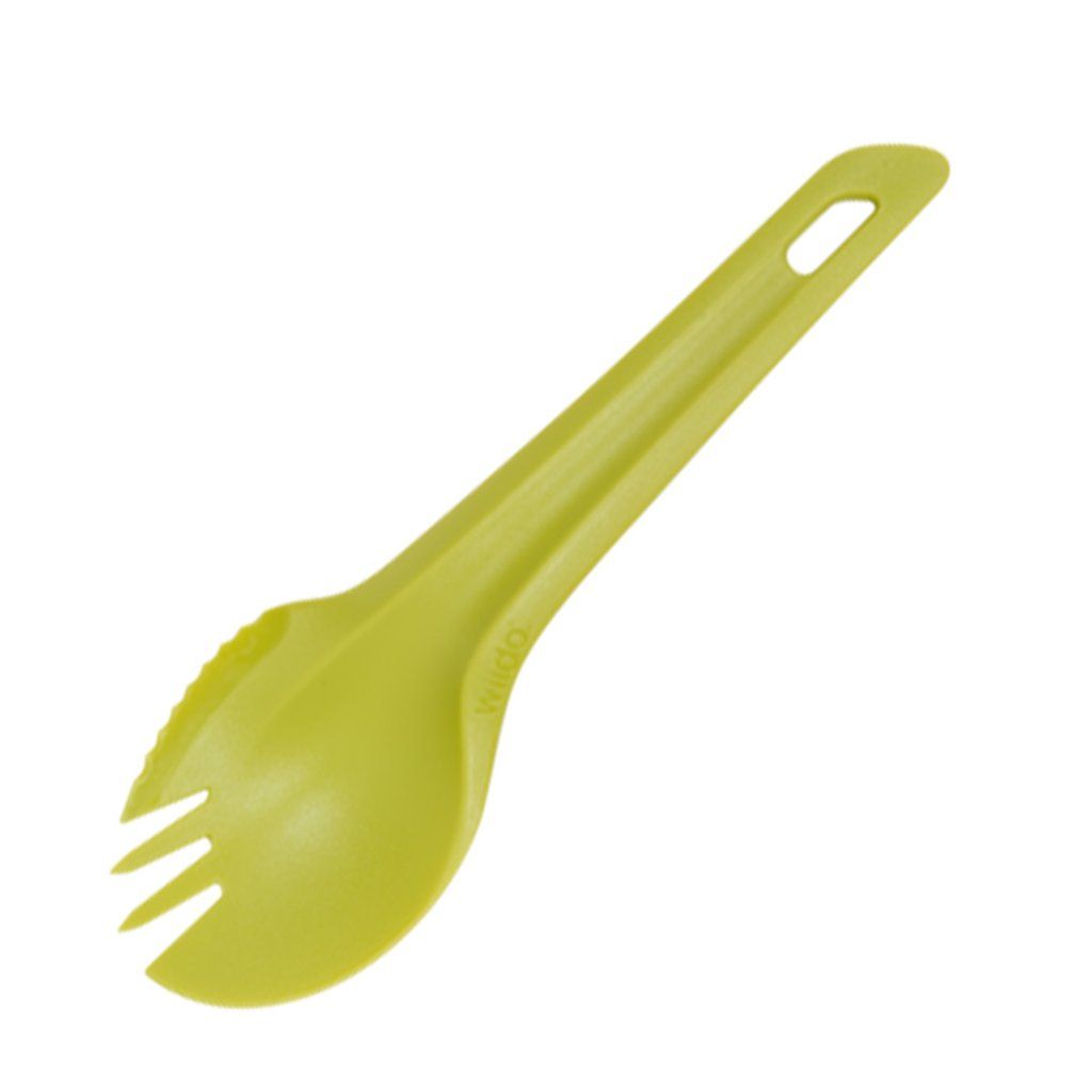 - Kompaktní kapesní příborová sada Spork ID W10312 od švédské značky WILDO. - Vyrobena z odolného a lehkého materiálu v barvě Lime, vhodná pro outdoorové aktivity. - Kombinuje funkci lžíce, vidličky a nože v jednom nástroji.