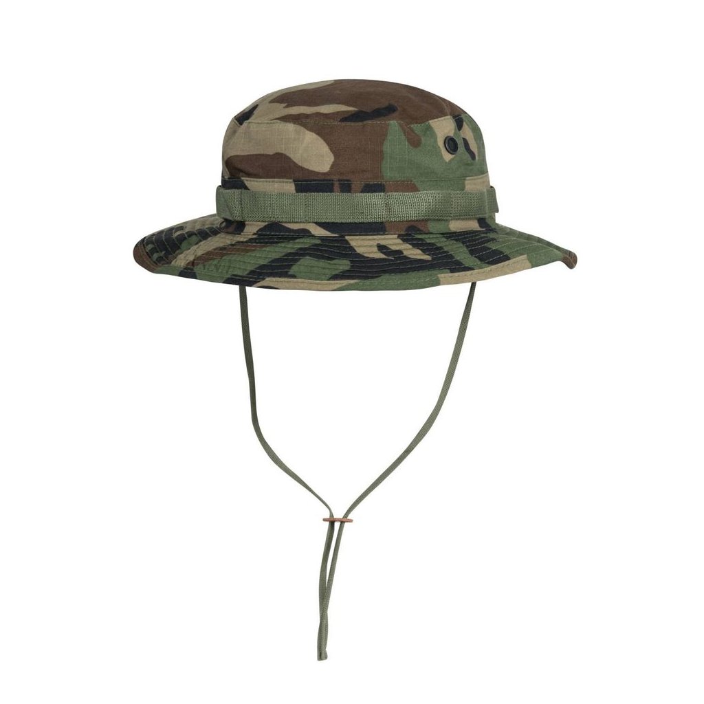 Krátký okraj neomezuje výhled ani pohyb a zároveň zajišťuje praktickou ochranu hlavy. Klobouk je vybaven seřiditelným páskem pod bradou, který zaručuje stabilní usazení i při pohybu nebo větru. Maskovací popruh po obvodu umožňuje doplnění lokálního maskování podle prostředí. Díky nízké hmotnosti je klobouk pohodlný i při celodenním používání.