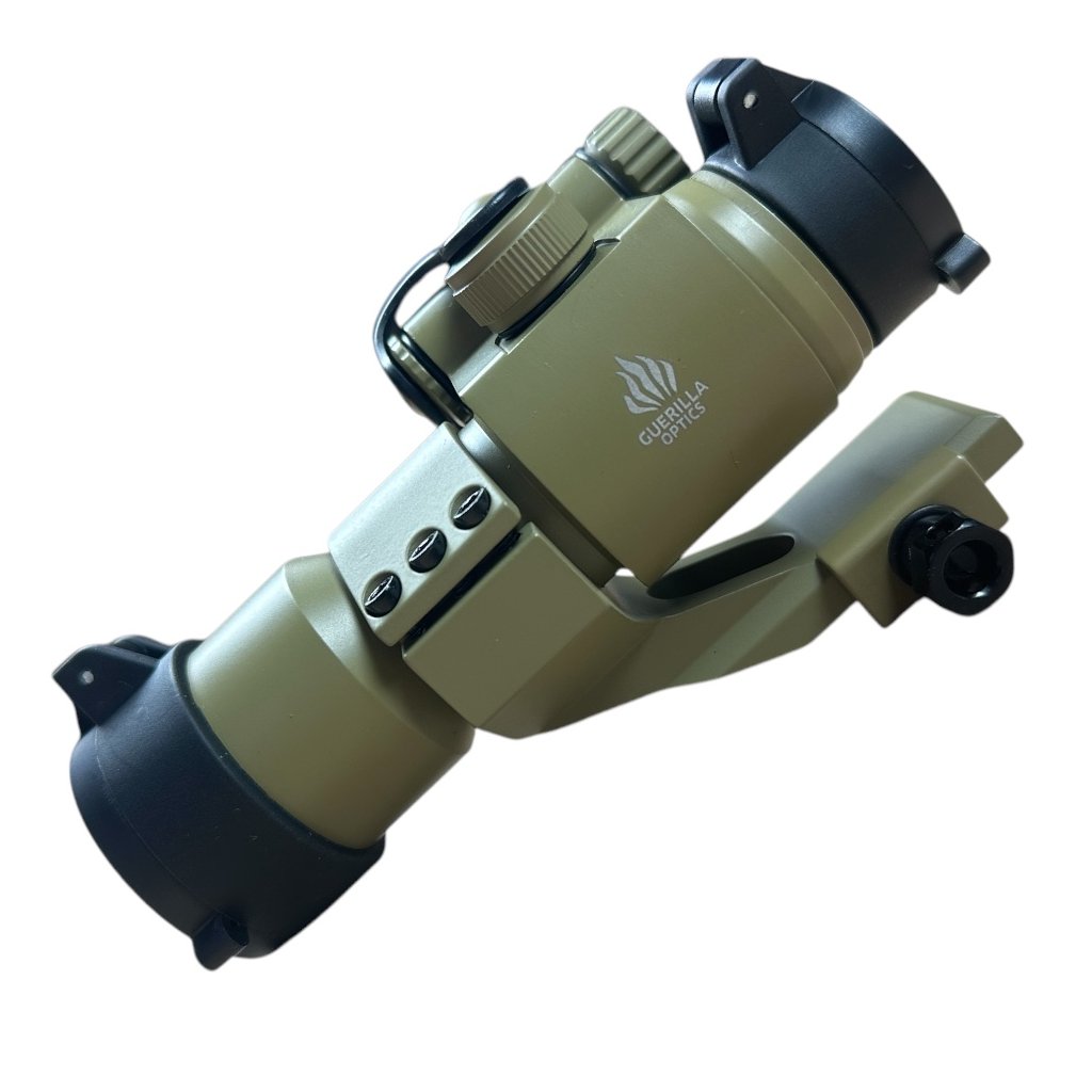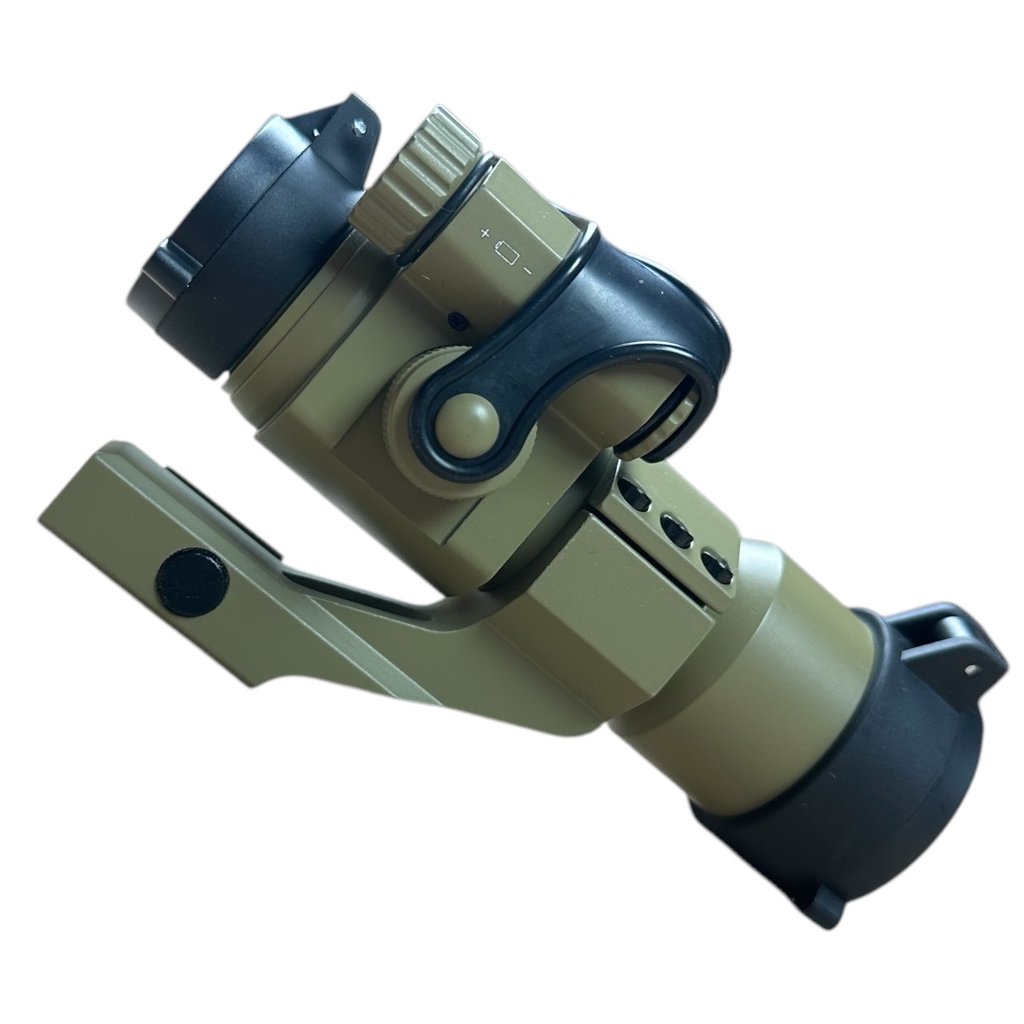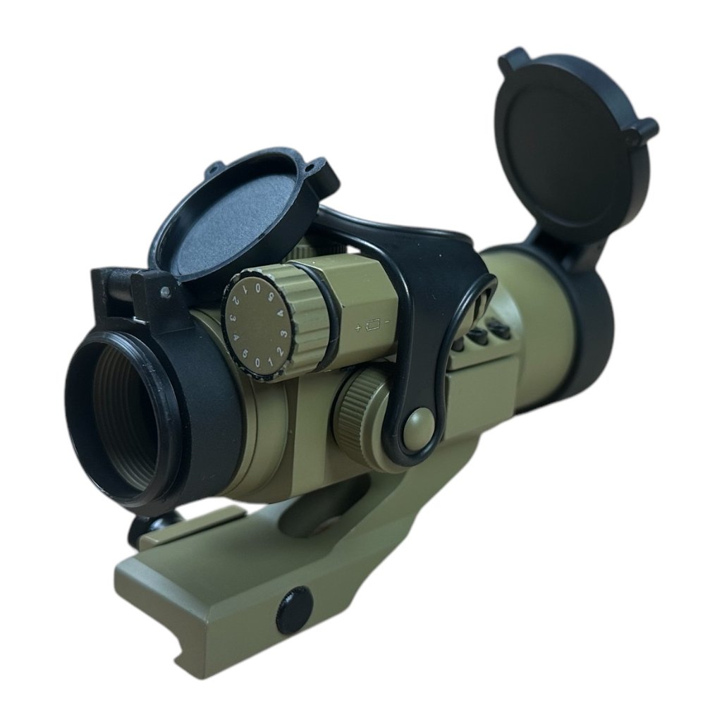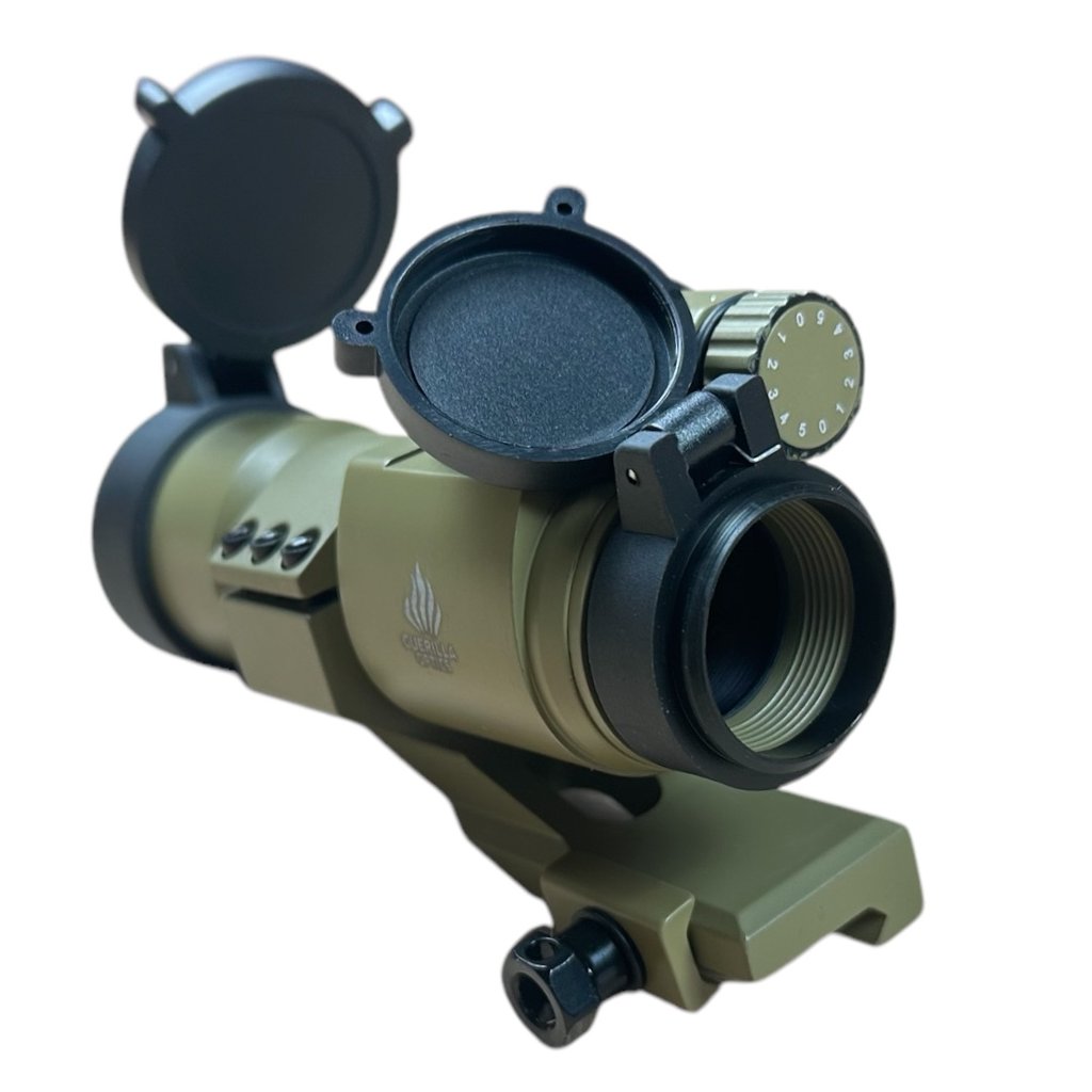 Airsoftový kolimátor Military od výrobce Guerilla Optics. Napájení 3x baterie AG13 (není součástí balení). Zaměřovací bod lze nastavit horizontálně i vertikálně s několika stupni intenzity. Délka zaměřovače je 130 mm.