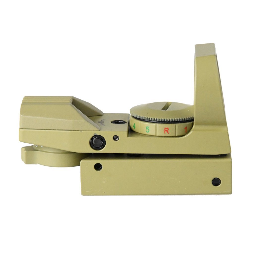 Tělo kolimátoru je vyrobeno z odolného materiálu v pískové barvě, což zvyšuje jeho odolnost vůči mechanickému poškození a zajišťuje dlouhou životnost i při náročném používání. Montážní systém je kompatibilní se standardními lištami typu Picatinny/Weaver, což umožňuje snadnou a rychlou instalaci na různé typy zbraní.