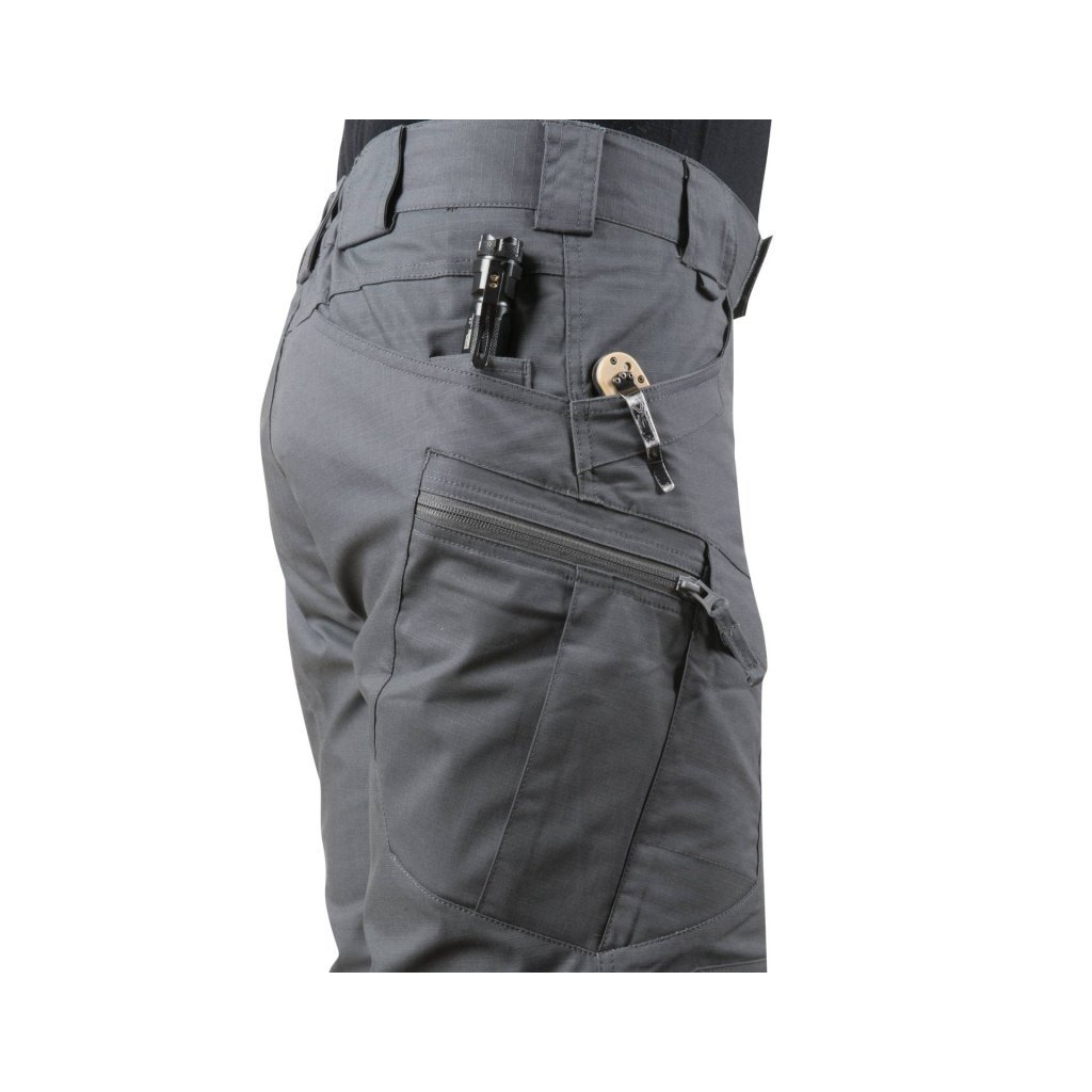 Střih a rozvržení kapes si zachovávají civilní vzhled, přesto umožňují s sebou nosit veškeré taktické vybavení. Elastický pás se zapínáním na velkro umožňují seřízení velikosti. Velká poutka u pasu pojmou široké pásky (EDC, UTL neno Cobra).
