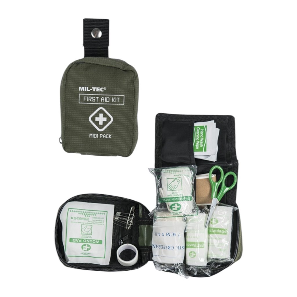 Lékárnička First Aid Kit MIDI pack (včetně obsahu, 120 x 90 x 50mm), oliva - MIL-TEC