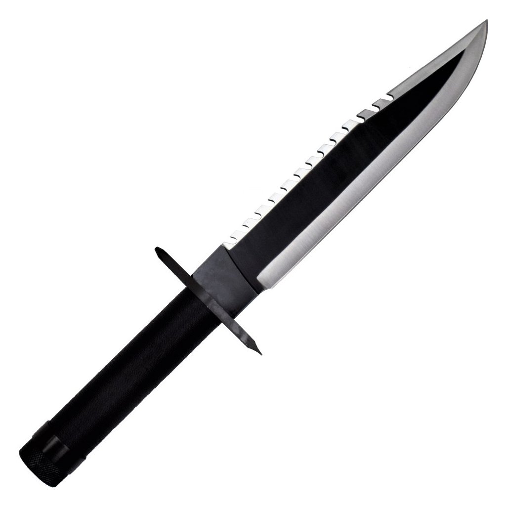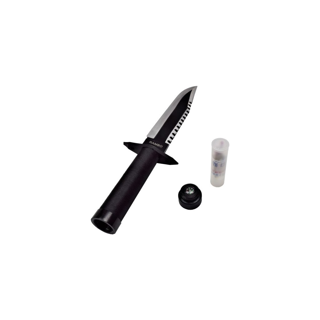 - Integrovaný survival kit: V duté rukojeti je umístěn základní survival kit obsahující kompas, rybářský vlasec s háčkem, tři zápalky s plochou na zapálení a náplast.