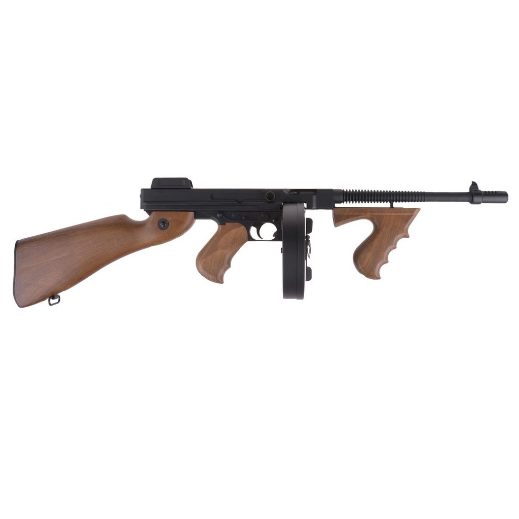 Replika klasického amerického samopalu v „gangsterské“ verzi známé z filmů - s přední rukojetí a bubnovým zásobníkem. Replika byla vyrobena prakticky celá z kovu (ZnAl). Díly, které zde byly v originále ze dřeva, byly vyrobeny z polymeru s barvou dokonale imitující dřevo. Baterie je uložena uvnitř pevné pažby a je přístupná po sejmutí podložky. Pažba a kolébka jsou vybaveny ocelovými taktickými otočnými popruhy.