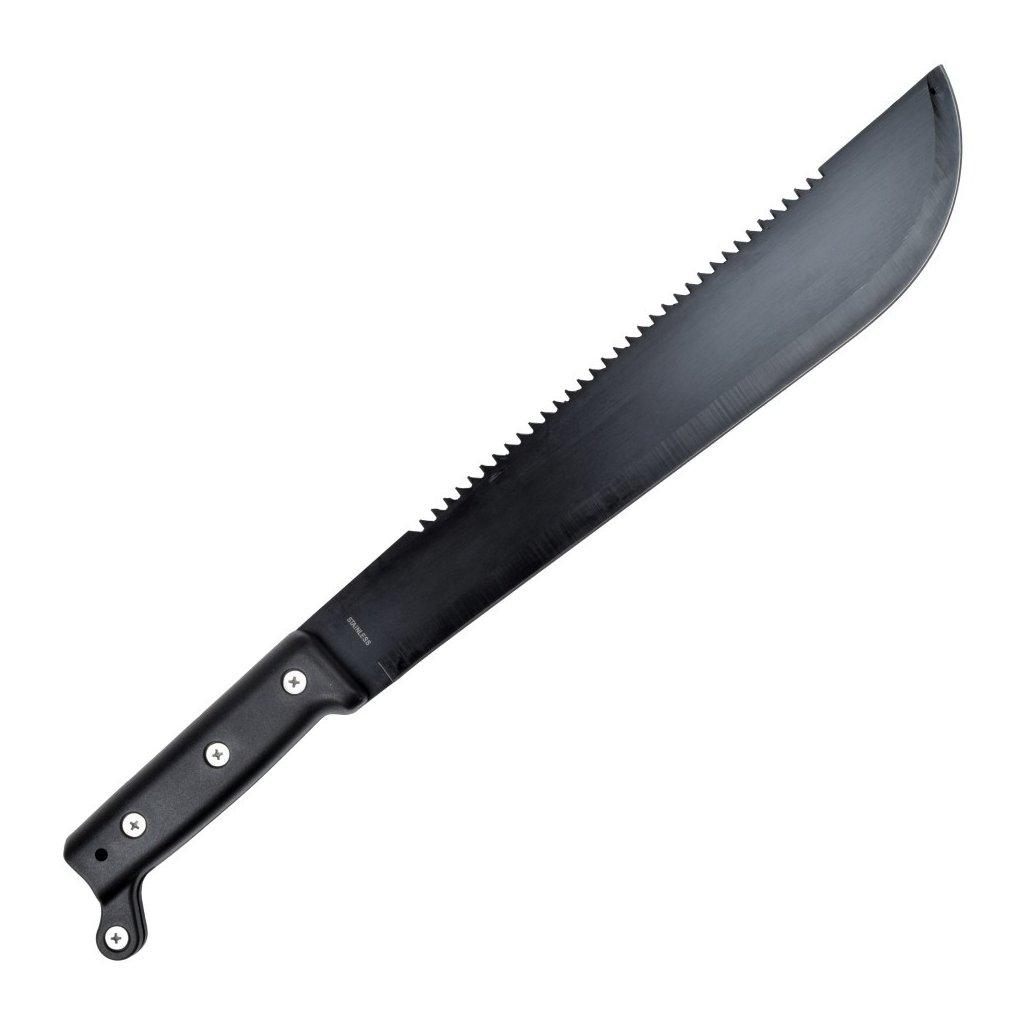 - Univerzální mačeta s integrovanou pilou na hřbetu čepele