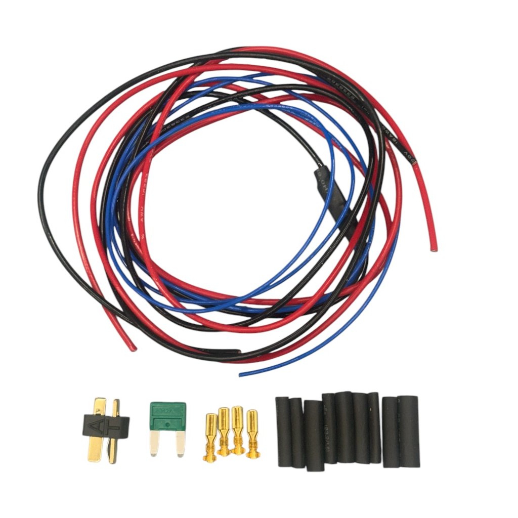 - Na zařízení jsou připájeny 2 černé vodiče se silikonovou izolací o průřezu 1,5 mm2, délka 500 mm a modrý vodič o průřezu 0,25 mm2 s délkou 500mm pro připojení kamkoliv na červený vodič. V balení je také přiložen 1000 mm dlouhý červený vodič se silikonovou izolací o průřezu 1,5 mm2