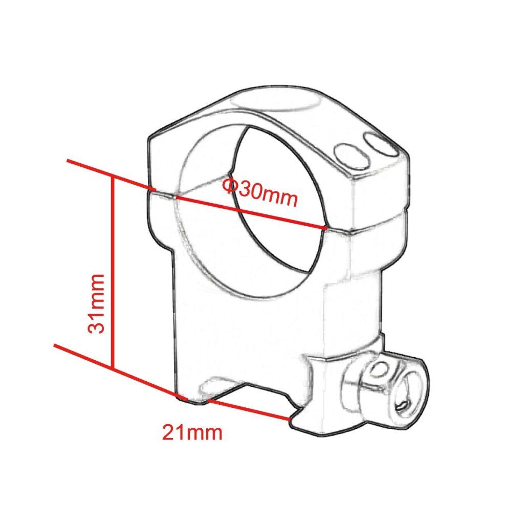 Průměr 30 mm, vysoký profil 31 mm, 1,2 palce od základny ke středu prstenu, celokov.