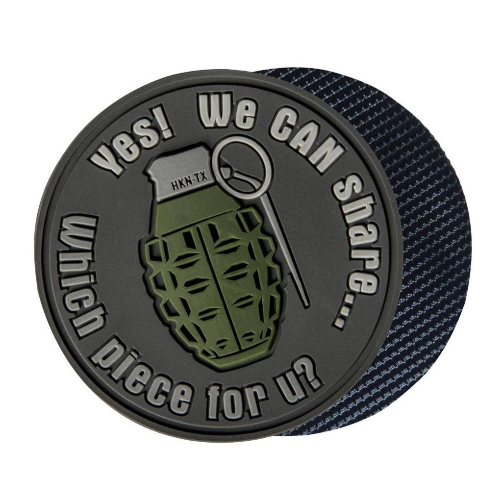 Logo z PVC s grafikou a textem určené k nošení na ID panelech z velkra na oblečení, taškách nebo batozích.