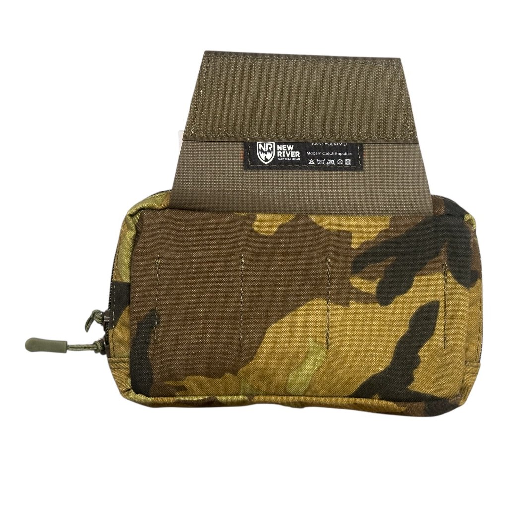 Univerzální podvěsná sumka New River Gear je taktický doplněk určený pro rozšíření úložné kapacity nosičů plátů, taktických rigů a mirigů. Uchycení je řešeno pomocí panelu se suchým zipem (velcro), což umožňuje rychlou a bezpečnou instalaci pod přední část nosiče.