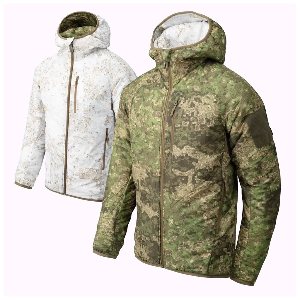 - Oboustranná zimní bunda Wolfhound, Windpack od Helikon-tex v maskovacích vzorech Pencott Wildwood/Snowdrift.