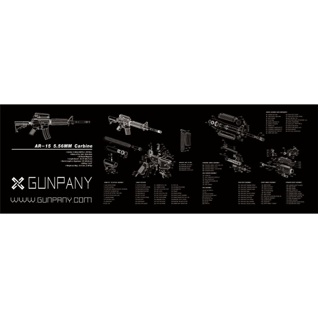 - Černá rohož potištěná seznamem všech dílů