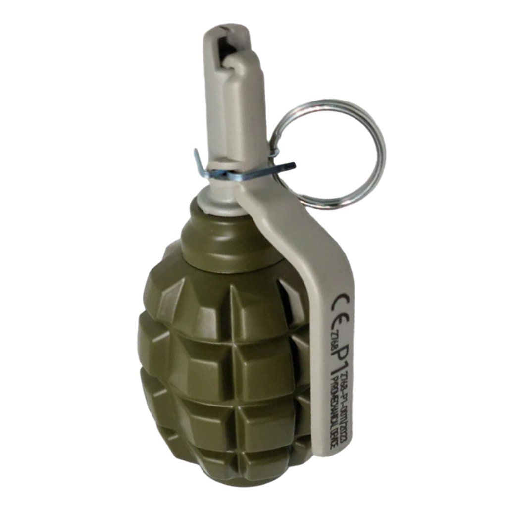 - Airsoftový ruční granát Pyrosoft Pyro-F1M-prachový je simulační zařízení kategorie P1 s křídovým plnivem.