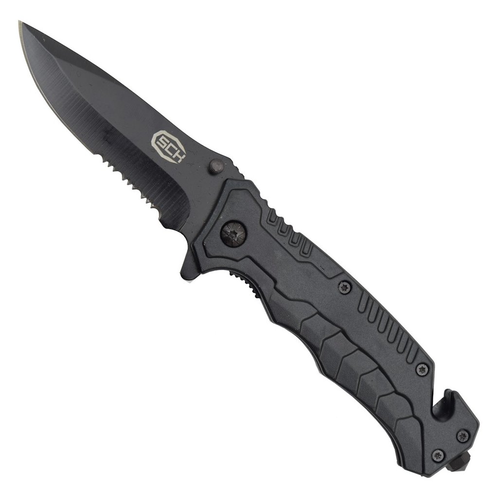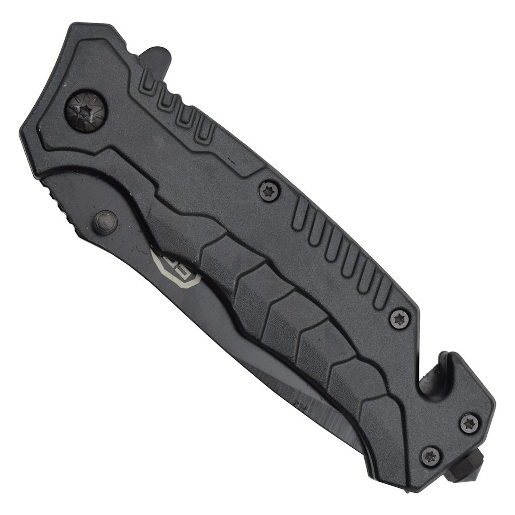 - **Zavírací nůž:** Ocelová čepel (délka 90 mm, celková délka 210 mm, hmotnost 130 g), plastová rukojeť, pojistka Liner lock, klips na opasek, pružinové asistované otevírání pro rychlou a bezpečnou manipulaci.