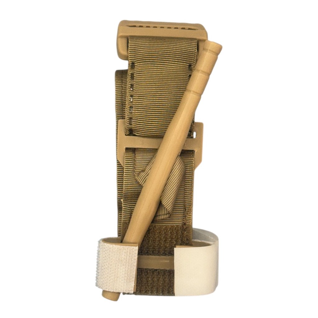 Cvičné škrtidlo Tourniquet A.C.M. v barevném provedení TAN je určeno výhradně pro výcvikové a tréninkové účely. Není určeno k použití při poskytování reálné lékařské pomoci. Konstrukce škrtidla umožňuje snadnou aplikaci jednou rukou, což usnadňuje nácvik správného postupu při simulaci krvácivých poranění. Upínací systém na pásce zajišťuje rovnoměrné rozložení tlaku po celém obvodu končetiny a po dotažení je škrtidlo bezpečně fixováno pomocí suchého zipu, čímž je minimalizováno riziko samovolného uvolnění během manipulace nebo transportu figuranta. Součástí škrtidla je také bílá plocha určená pro zaznamenání času aplikace, což umožňuje nácvik správné evidence při simulovaných zásazích. Produkt je vyroben z netoxických materiálů a je bezpečný pro opakované použití při tréninku.