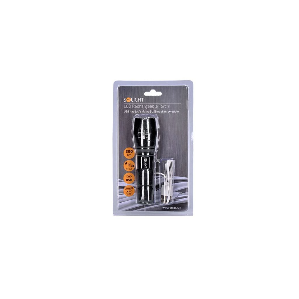 Solight LED nabíjecí svítilna je univerzální osvětlovací zařízení vhodné pro každodenní použití i outdoorové aktivity. Svítilna je vybavena vysoce výkonnou LED diodou typu XM-L T6, která poskytuje světelný tok až 300 lumenů. Uživatel má možnost volby ze tří režimů svícení: 100 %, 50 % a blikání. Teleskopický zoom umožňuje plynulé nastavení šířky světelného kuželu dle aktuálních potřeb.
