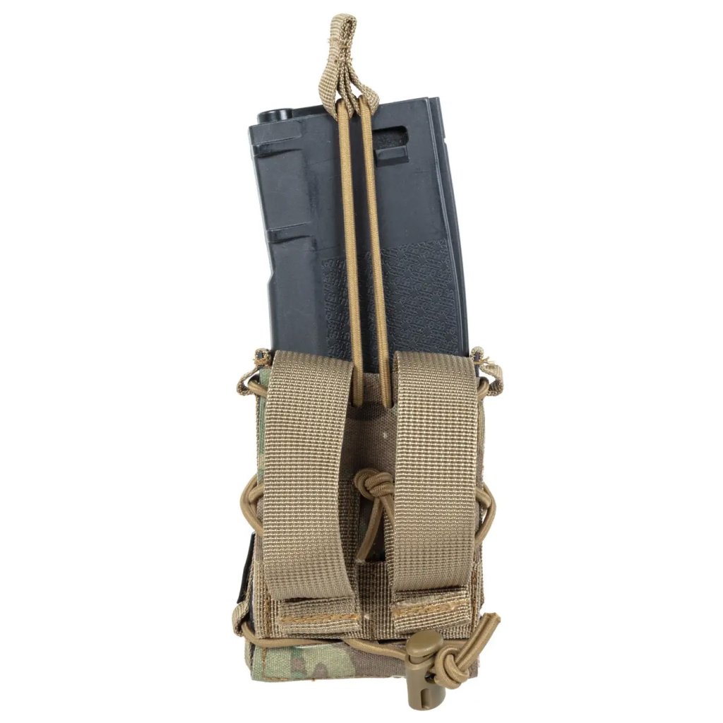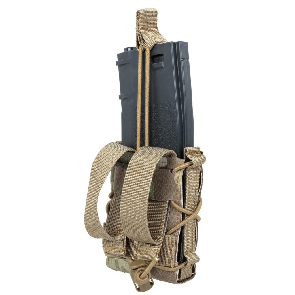 Kamuflážní vzor Multicam zvyšuje univerzálnost použití v různých typech terénu a přispívá k profesionálnímu vzhledu vybavení. Pouzdro je typu Open Top, což umožňuje rychlý a snadný přístup k zásobníku.