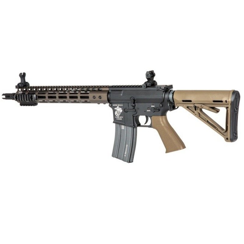 Výrobce Specna Arms Kód varianty 9767-BR Záruka 24 měsíců Hmotnost balení 3.78 kg Typ pohonu zbraně Elektrická AEG Materiál těla zbraně Kov Barva Chaos Bronze Úsťová rychlost 125 m/s Typ mechaboxu Verze 2 Model zbraně Série M4 -