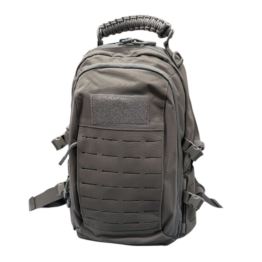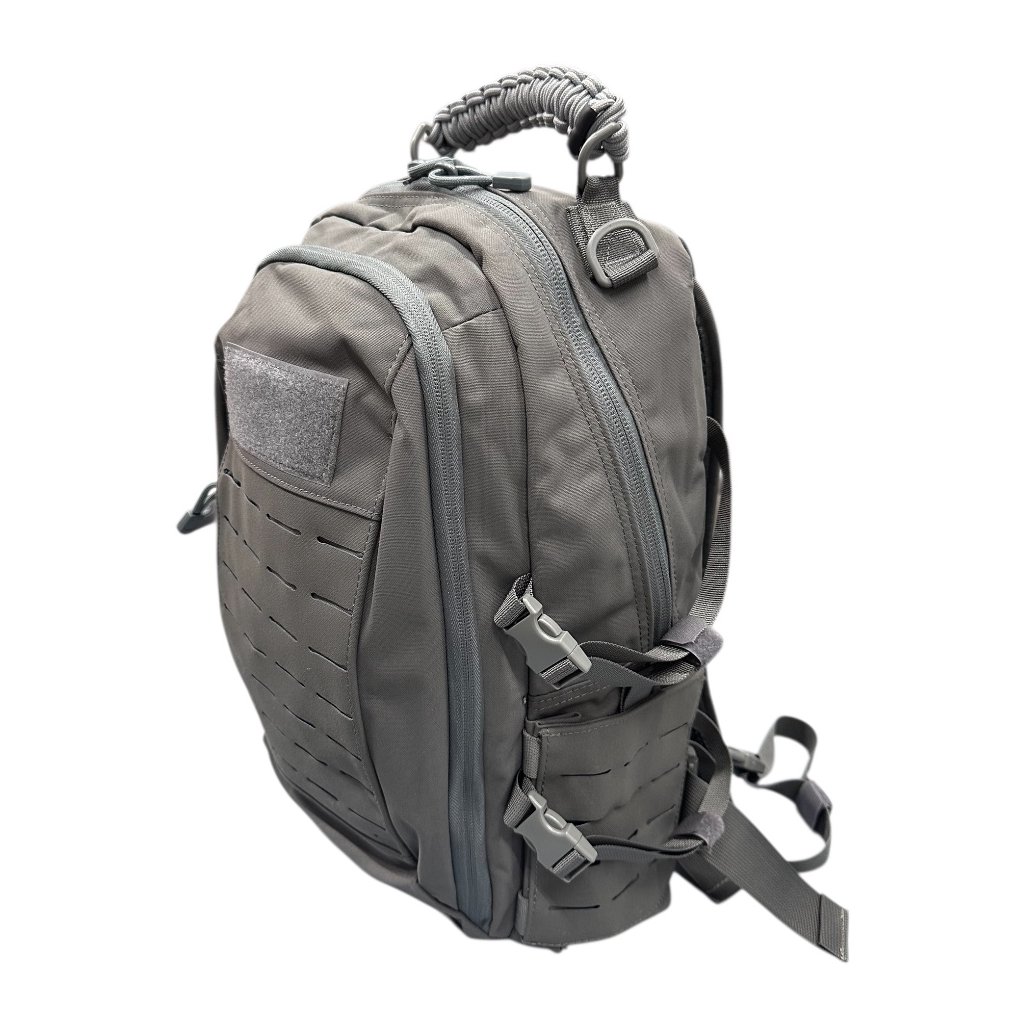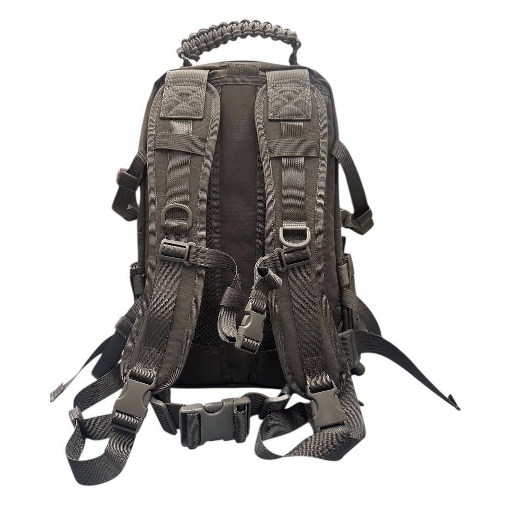 Batoh je vybaven laser-cut MOLLE systémem pro snadné rozšíření o další vybavení a D-kroužky pro uchycení doplňků. Boční kompresní popruhy umožňují upravit objem batohu dle aktuální potřeby. Nastavitelné ramenní popruhy s prodyšnou podšívkou, stejně jako bederní a hrudní popruhy, zajišťují ergonomické a pohodlné nošení i při delším používání. Horní rukojeť s opletem z paracordu usnadňuje manipulaci s batohem. Na přední straně je umístěn panel na suchý zip pro umístění nášivek.
