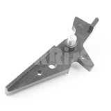 Spoušť je vyrobená z leteckého duralu EN AW 7075, který má pevnost oceli a hmotnost hliníku, proto je vhodný na tyto namáhané díly. Spoušť je vyráběná na CNC obráběcím centru a má povrchovou úpravu ochranným eloxování o síle 5µm (0,005mm).