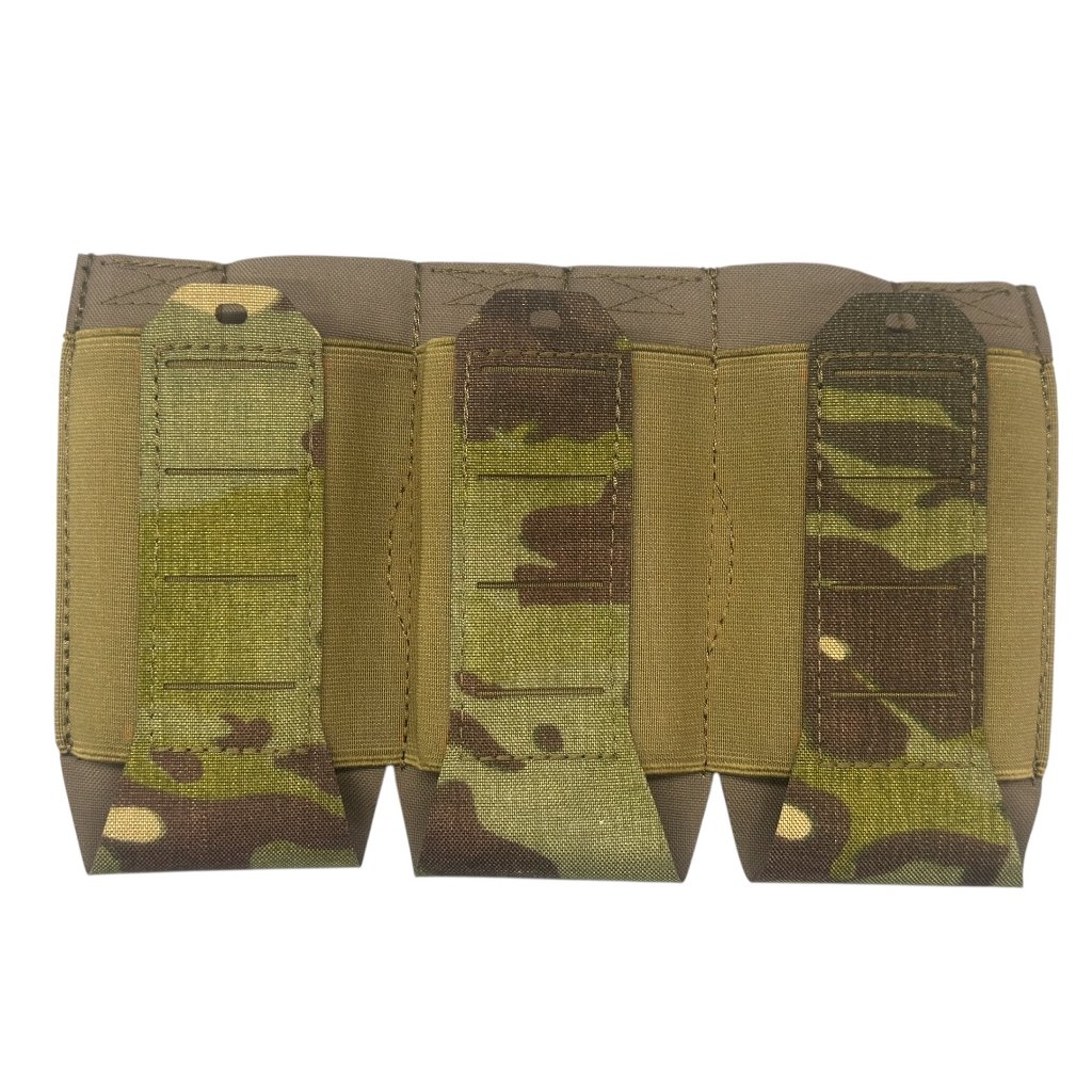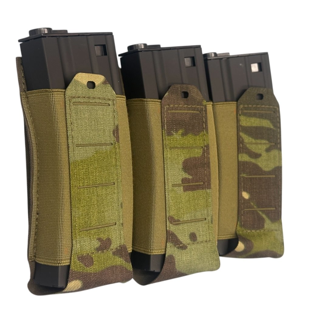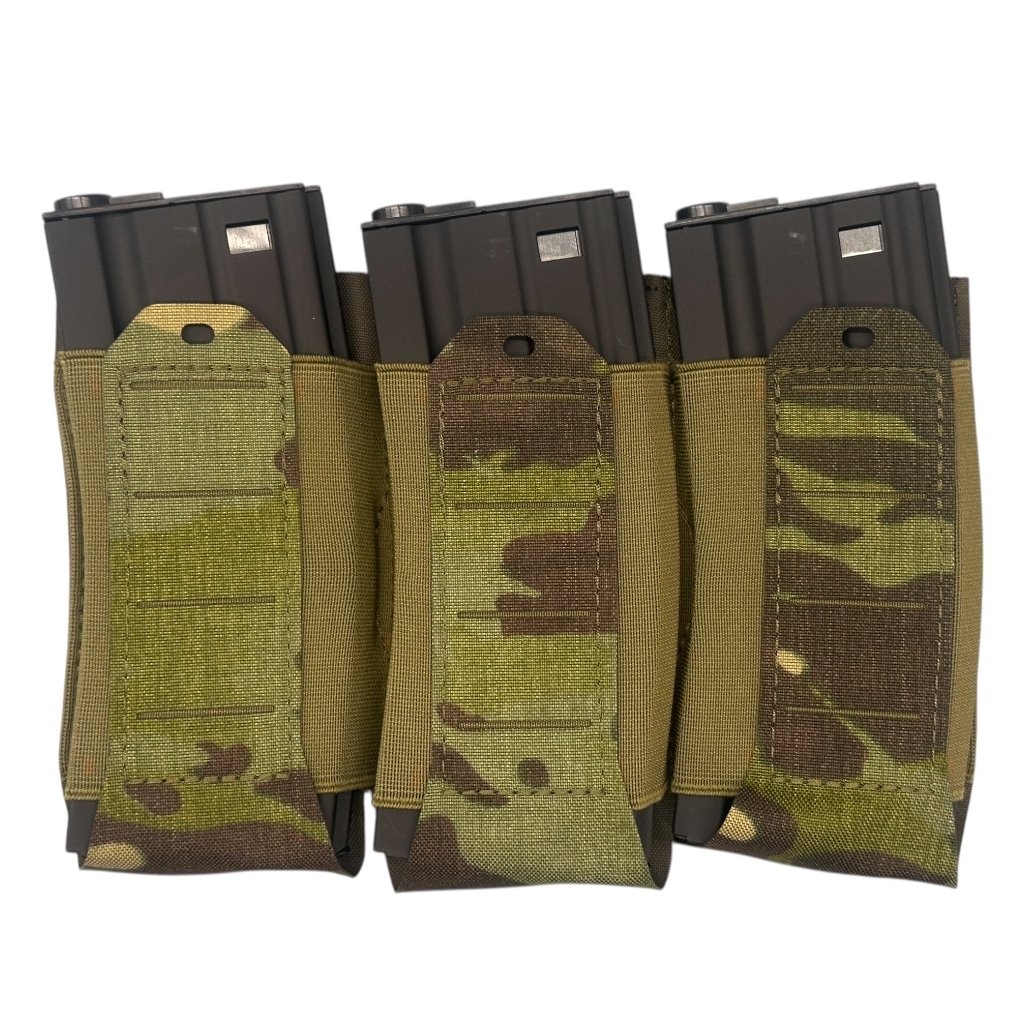 Sumka Elastická Tripplepanel pro AR/AK/sa58 (vz.95) - New River je určena pro efektivní a bezpečné uložení zásobníků typu AR15, AK47/74 a Sa58. Konstrukce využívá elastický samosvorný systém, který zajišťuje pevné uchycení zásobníků bez nutnosti použití dalších zajišťovacích prvků – zásobník je fixován pouhým zasunutím. Sumka je vyrobena z odolné tkaniny Cordura 500D v kombinaci s latexem a polyesterem, což zaručuje vysokou životnost, pružnost a spolehlivost i při intenzivním používání.