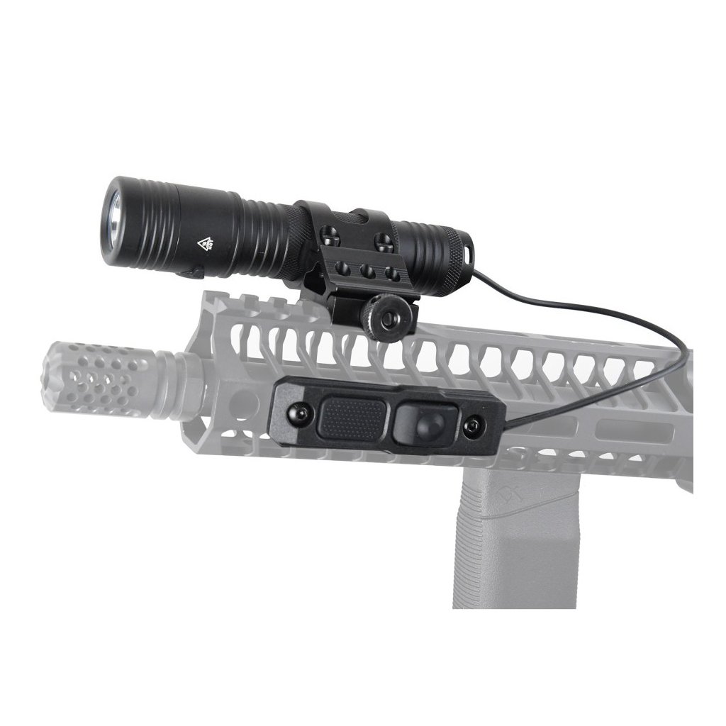 Svítilna je vybavena duálním ovládáním (DUO switch) a kabelovým tlakovým spínačem pro rychlou a bezpečnou aktivaci. Montáž na standardizovanou RIS lištu umožňuje snadnou integraci na airsoftové a jiné taktické zbraně. Robustní konstrukce zajišťuje nárazuvzdornost do výšky 1 metru.