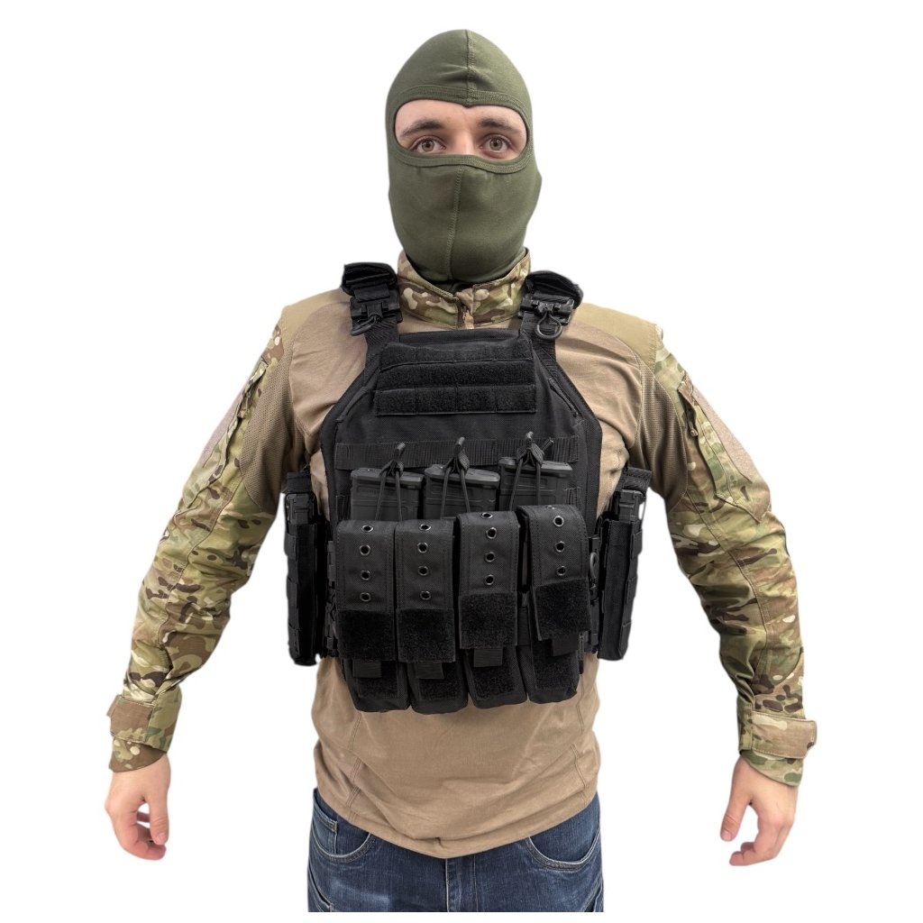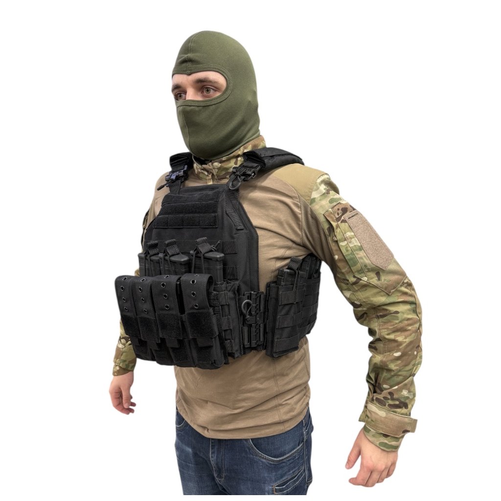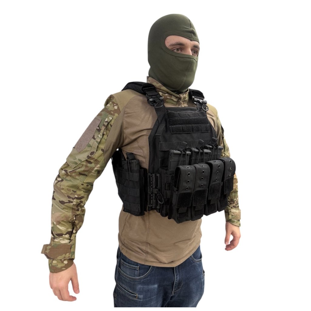 Taktická vesta nosič plátů YAKEDA VT-8300-2 v černém provedení je určena pro náročné uživatele vyžadující vysokou odolnost, variabilitu a komfort při dlouhodobém nošení. Konstrukce vesty je vyrobena z odolného nylonu 1000D, který zajišťuje vysokou mechanickou pevnost a odolnost vůči opotřebení i povětrnostním vlivům.