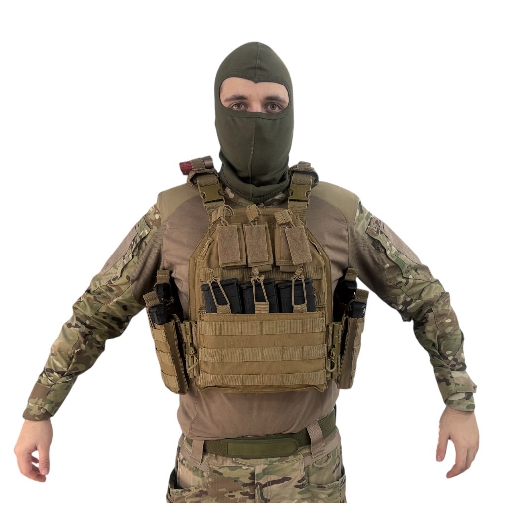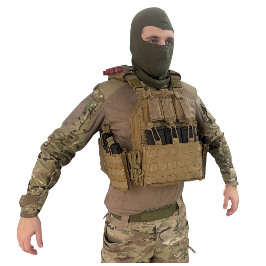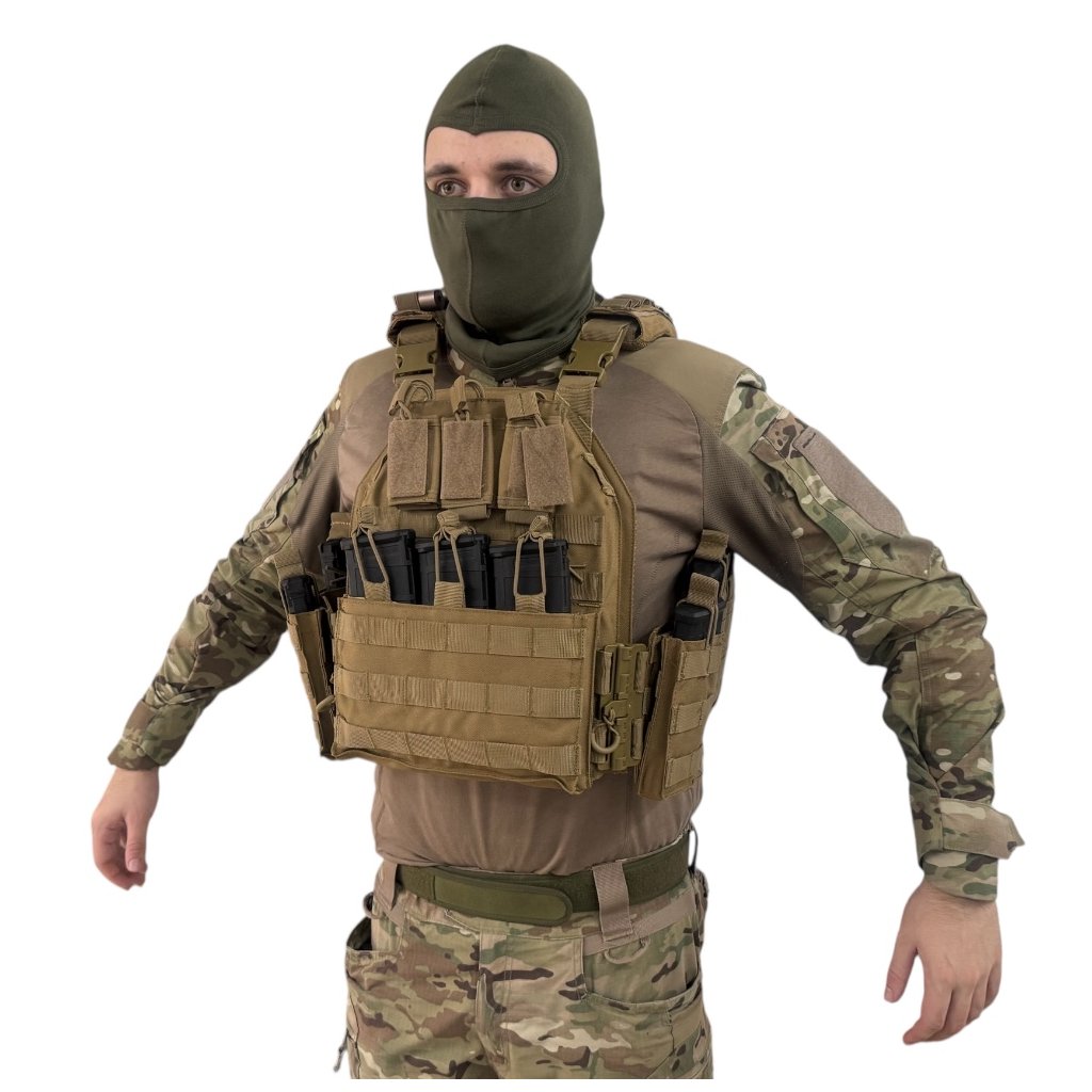 Povrch vesty je opatřen modulární MOLLE vazbou, která umožňuje uchycení dodatečného vybavení, jako jsou sumky, lékárničky, radiostanice a další příslušenství dle potřeb uživatele. Vesta zajišťuje spolehlivé a stabilní uložení plátů a je vyrobena z odolných materiálů, které garantují dlouhou životnost i při intenzivním používání.