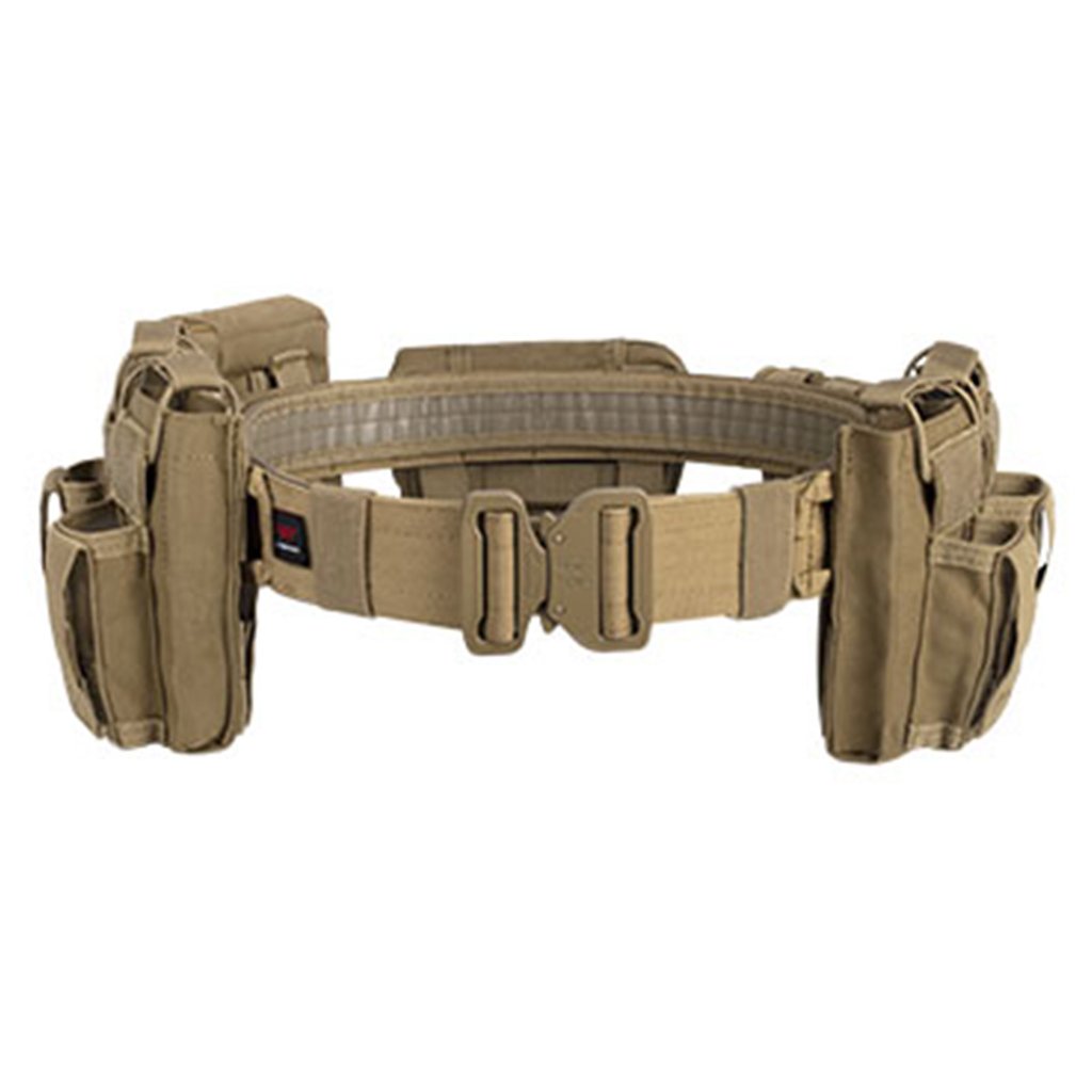 - Plně vybavený taktický opasek v barvě coyote s pěti odnímatelnými sumkami.