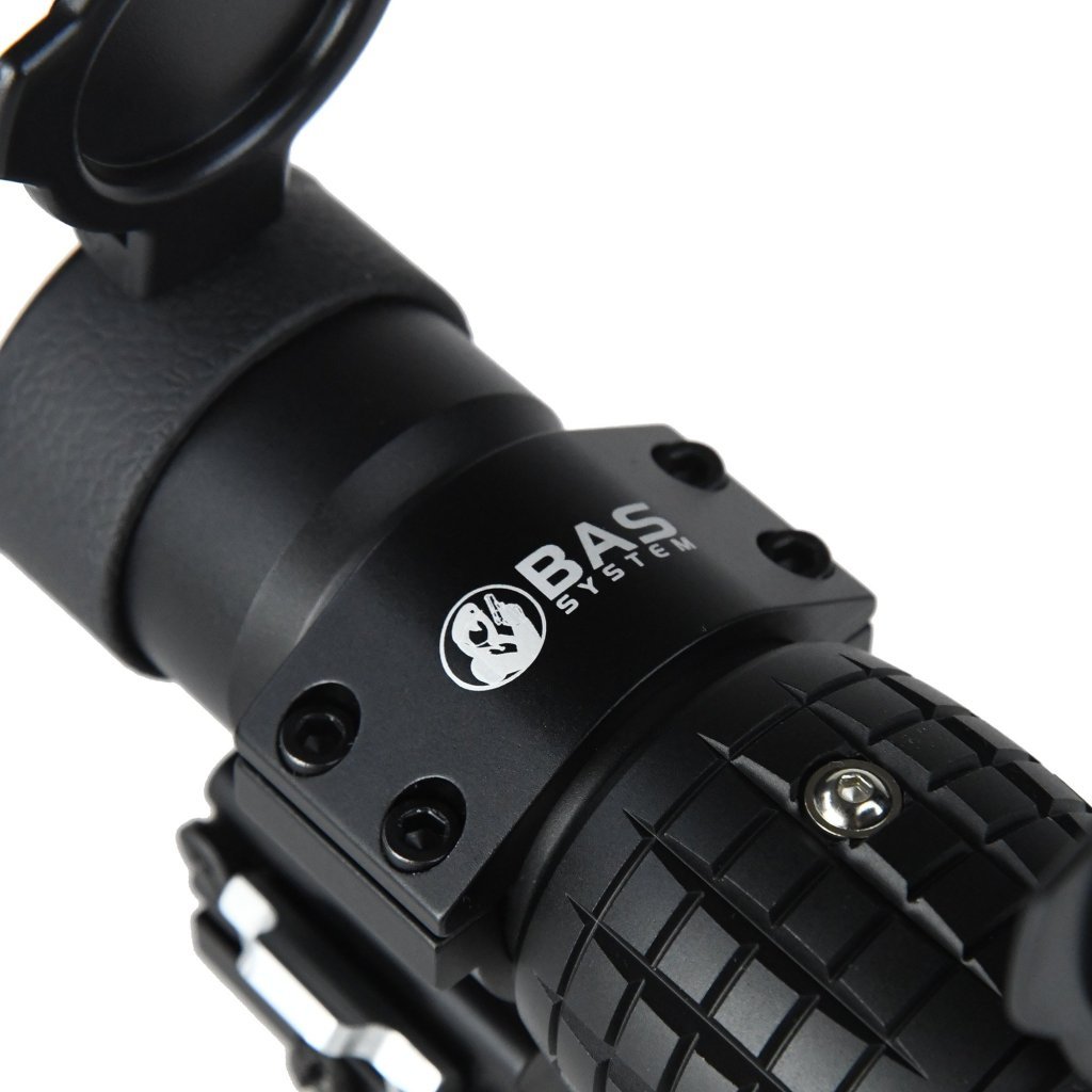 Výklopná předsádka BAS System ZB3-4077 je optické zařízení určené ke zvětšení cílového obrazu s trojnásobným zvětšením. Konstrukce umožňuje rychlé a snadné vyklopení předsádky mimo optickou osu, což zajišťuje flexibilní použití v terénu. Předsádka je kompatibilní s většinou standardních kolimátorů a zaměřovačů. Tělo předsádky je vyrobeno z odolných materiálů, které zaručují dlouhou životnost a spolehlivost i v náročných podmínkách. Optika je opatřena antireflexní úpravou pro maximální propustnost světla a jasný obraz. Montáž je řešena pomocí pevného a stabilního uchycení na lištu typu Picatinny/Weaver. Výklopná předsádka BAS System ZB3-4077 je vhodná pro profesionální i sportovní použití, kde je vyžadováno rychlé přepínání mezi standardním a zvětšeným zobrazením.