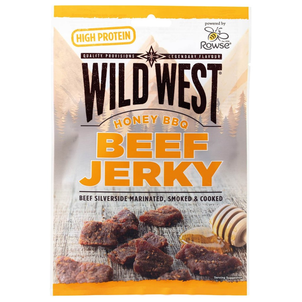 Wild West Beef Jerky Honey BBQ je sušené hovězí maso vyrobené z kvalitní hovězí kýty (silverside). Na 100 g hotového produktu je použito 165 g marinovaného masa. Výrobek je následně uzený a vařený, což zajišťuje zachování šťavnatosti a charakteristické chuti.
