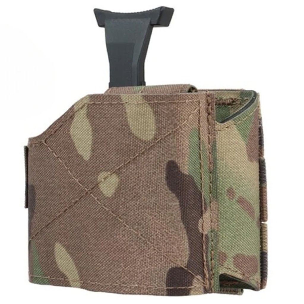 Opaskové pistolové pouzdro WoSport GB-80 je určeno pro pravou ruku a vyznačuje se univerzální kompatibilitou s většinou služebních i civilních pistolí velikosti Full Size a Compact, například Glock 17, 18C, 19, 19X, Beretta, CZ nebo Hi-Capa. Nastavitelná konstrukce umožňuje bezpečné a pevné uchycení zbraně dle individuálních rozměrů konkrétní pistole. Pouzdro je vybaveno systémem MOLLE, který umožňuje snadné uchycení na opasek nebo nosič plátů. Palcová pojistka inspirovaná systémem UPH Warrior zajišťuje rychlé a bezpečné tasení zbraně. Pouzdro je vyrobeno v barevném provedení Multicam (replika).
